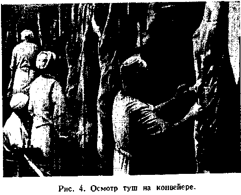 Туши размещают для осмотра на конвейерном пути (рис. 4). До окончания П.о. не допускается удалять из убойного цеха тушу,