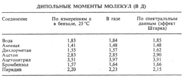 Сопоставление Д. м. полярных молекул нек-рых орг. соед., полученных разными методами, показано в таблице.