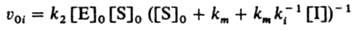 При таком механизме торможения, если [Е] << [S]0 и Е << [I]0, начальная скорость превращ. субстрата S равна: