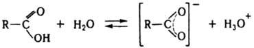 Важнейшее св-во к-т - их способность к диссоциации (ионизации) в водном р-ре с образованием стабилизир. карбоксилатного аниона и катиона гидроксония: