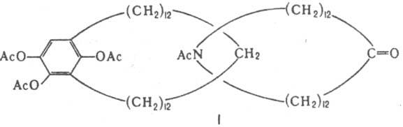 приводит к соед. V, а замыкание в нем цепей R-к прекатенану VI, в результате разрыва связей между плоским циклом и группой D, а также связи А-В образуется К. VII. Как правило, такая схема включает 20 и более стадий. К. можно также получить т. наз. статистич. методом - циклизацией длинноцепной молекулы в р-ре, содержащем макроцикл; выходы обычно крайне низки.