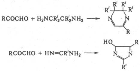 (где R=СН3, С6Н5). При взаимод. a-К. с 1,2-диаминами или амидинами образуются соотв. производные пиразина или имидазола: