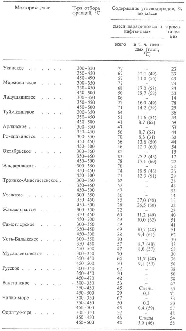 содержанием циклов в молекулах и длинными малоразветвленными парафиновыми цепями.