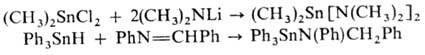 с образованием станниламинов: (CH3)3SnN(CH3)2