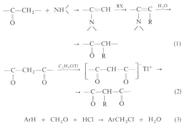 алкильных производных карбонильных соед. (1-р-ция Сторка),