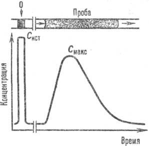 этом точный микрообъем (пробу) изучаемой жидкости вводят в непрерывно движущийся