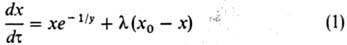 пропорциональные соотв. концентрации реагирующего в-ва и т-ре в реакторе; x0,