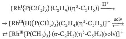 s-комплексов орг. производных Rh(III), напр.: