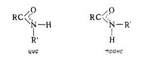 своб. вращения вокруг связи С(О)—N А. могут существовать в цис-