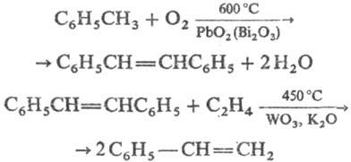С.: 1) дегидрирование этил-бензола в присут. Fe2O3, промотированного